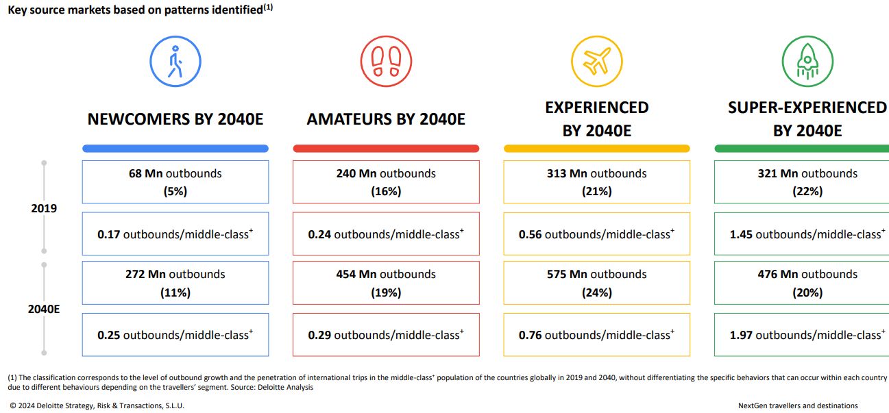 Μέχρι το 2040, η συχνότητα των εξερχόμενων ταξιδιών αναμένεται να αυξηθεί σημαντικά, με τους ταξιδιώτες να κατηγοριοποιούνται σε τέσσερις διακριτές ομάδες: